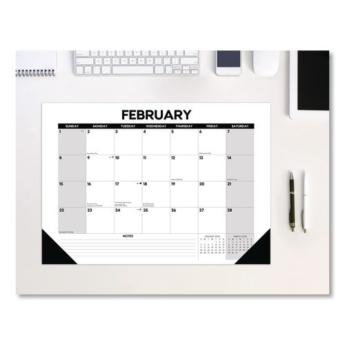 Basic Small Monthly Desk Pad Calendar, 17 x 12, White/ Gray/ Black Sheets, Black Headband/ Corners, 12- Month (Jan to Dec) 2026